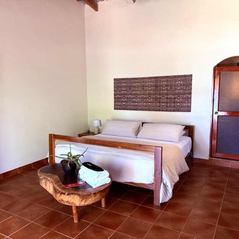 Like the other guest room, Chocoyo opens onto the upstairs patio corridor that overlooks the pool and ocean.